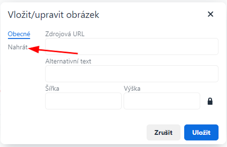 - Zvolit záložku nahrát a vyhledat obrázek z PC